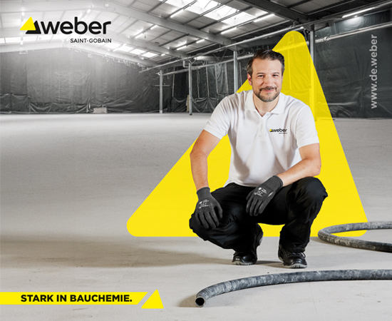 Der fließfähige Betonersatzmörtel R4 ist bei mittleren Belastungen direkt nutzbar, kann aber auch mit weiteren Weber-Bodenprodukten beschichtet werden. Er weist eine sehr hohe Festigkeit von CT-C50-F7 auf und ist nach europäischer Norm für statisch relevante Anforderungen geeignet.